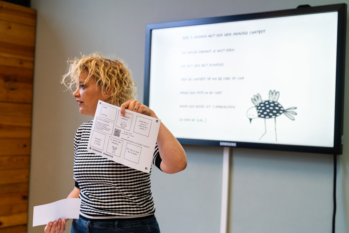 Hoe kunnen we AI gebruiken, zonder dat we afbreuk doen aan onze creatieve vermogens en talenten? In de workshop ‘Dit is geen AI workshop’ liet Simone van den Berg deelnemers kennismaken met de door haarzelf ontworpen ‘Chatbot Charlie’: een analoge chatbot die leerlingen creatieve opdrachten geeft. Een mooie manier om AI in te zetten, zonder dat de creativiteit bij leerlingen verloren gaat.