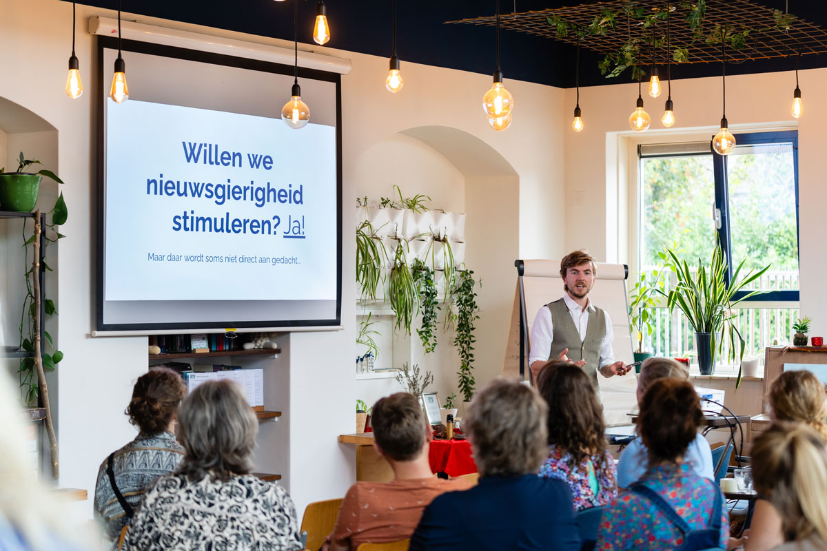 Wil je leerlingen écht betrokken krijgen bij je les? Ga dan op zoek naar hun natuurlijke nieuwsgierigheid. Tijdens zijn interactieve lezing ‘Samen nieuwsgierig’ deelde Jason Fredrick van Eunen zijn kennis over hoe nieuwsgierigheid werkt. En nog belangrijker: hoe je als docent de ontdek-knop van elke leerling kunt vinden.