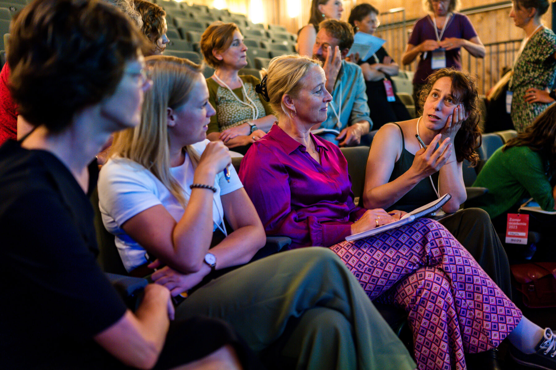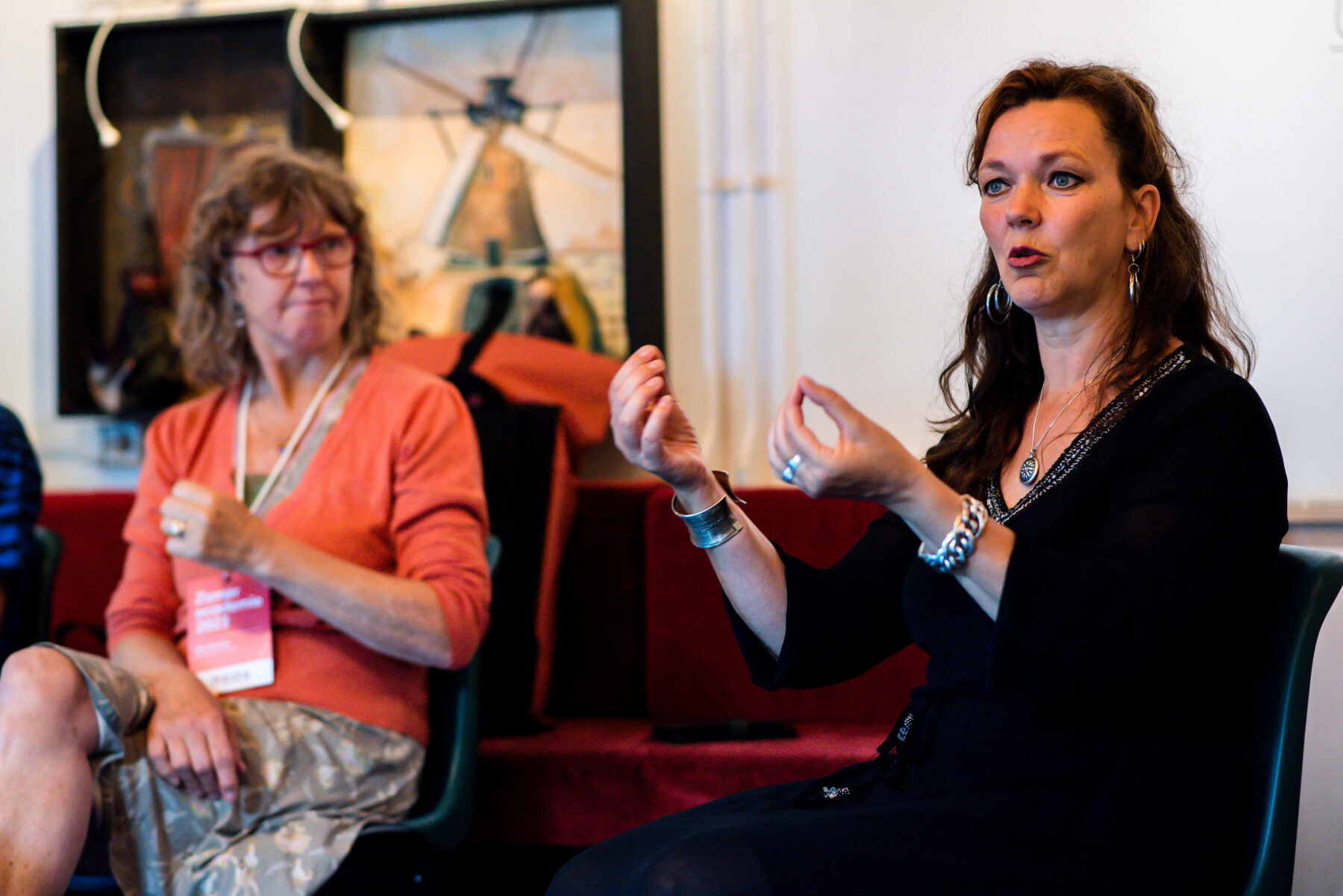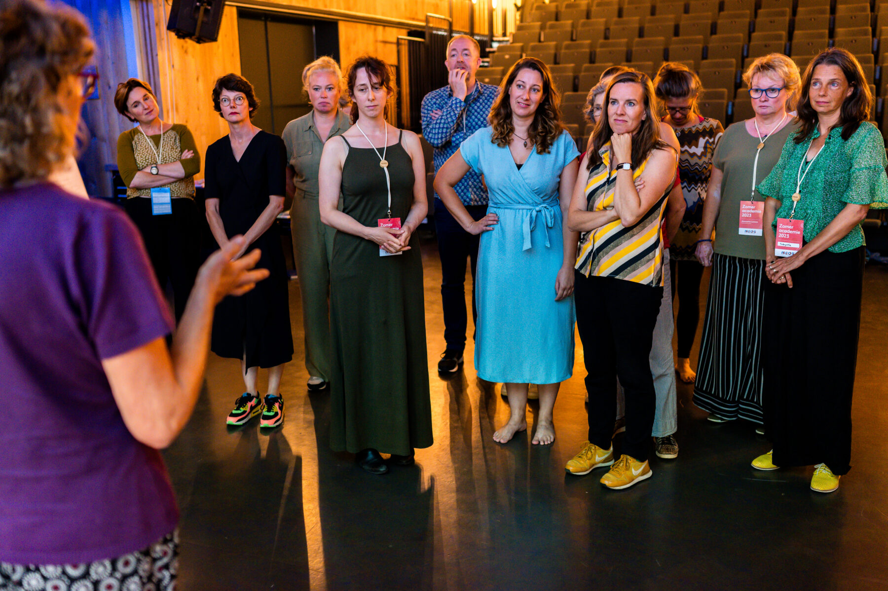 De tweede dag startten we met een lezing van Sabrina Alhanachi. Bevlogen deelde ze haar kennis over Cultureel Responsief Lesgeven. Net als bij de workshop van Vocal Statements ging het over het verhaal achter de leerling, om verschillende culturen te leren kennen en op die manier te verbinden. Daarna was het tijd voor een gesprek op voeten onder begeleiding van Tjitske Bergsma. Een methode vanuit Deep Democracy waar je op een interactieve en bewegende manier meerdere perspectieven op een onderwerp of stelling inzichtelijk kunt maken.
